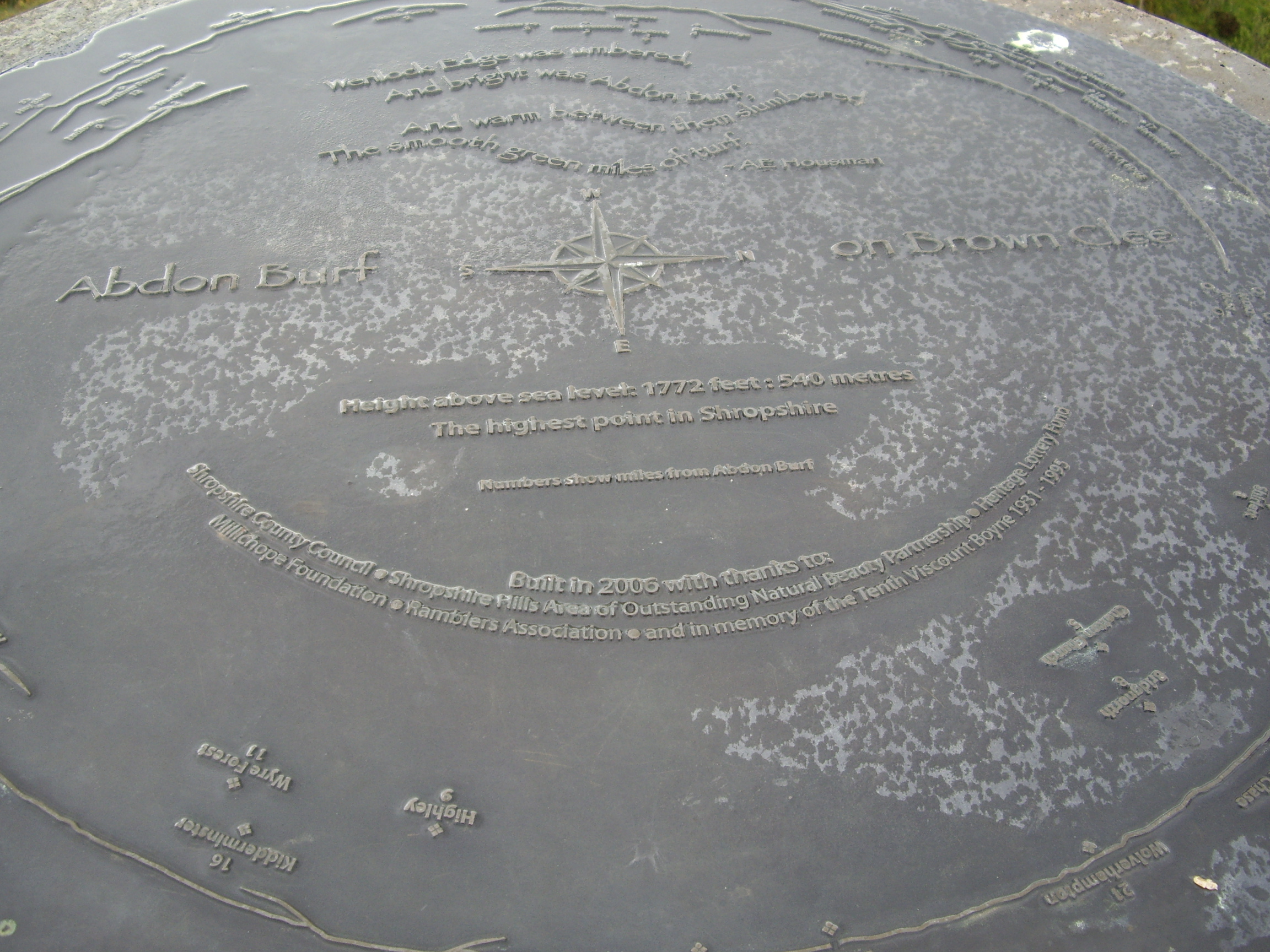 Plaque on the summit of Abdon Burf on Brown Clee (540m),