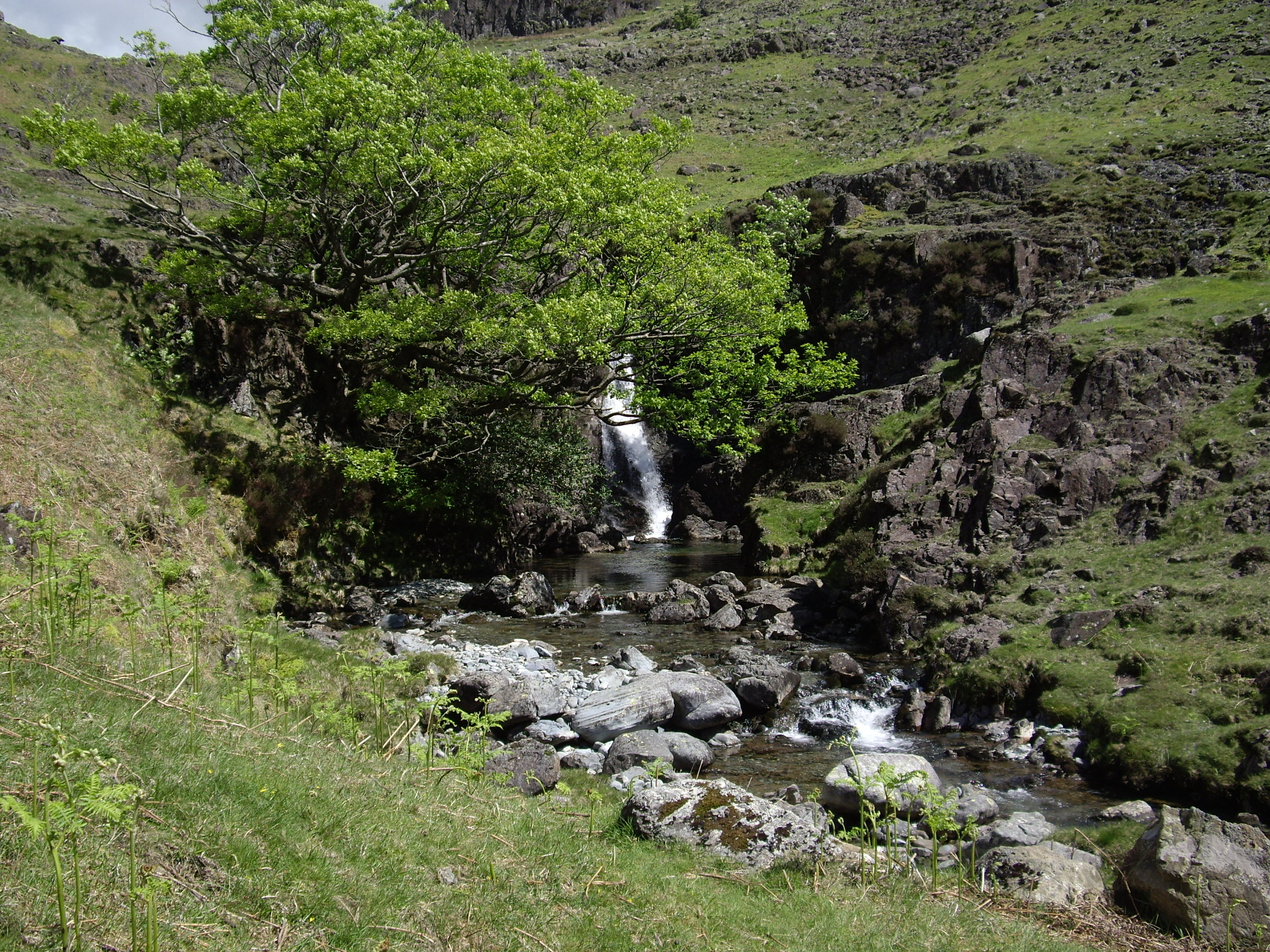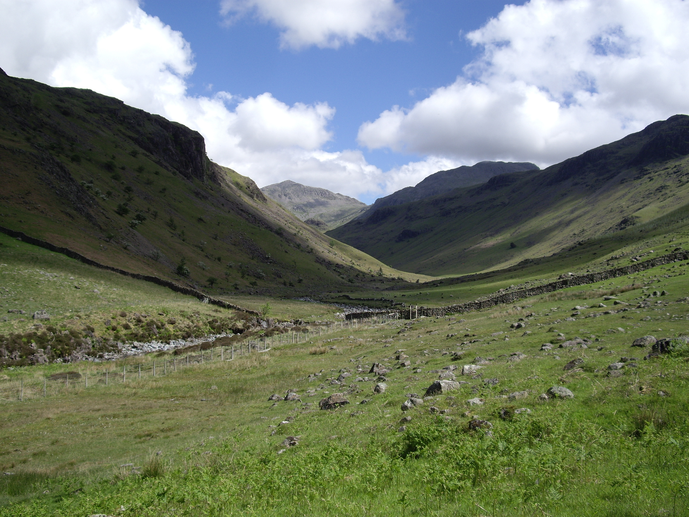 My route for Scafell Pike started at the Eskdale Campsite, near Boot. I headed east along the road toward Hardknott, turning off at Brotherilkeld Farm and following the 'footpath' alongside the River Esk, heading up-river. The going was frequently very squelchy underfoot. Over Lingcove Bridge and I continued up the River Esk, via Great Moss, until turning NW up Little Narrowcove.