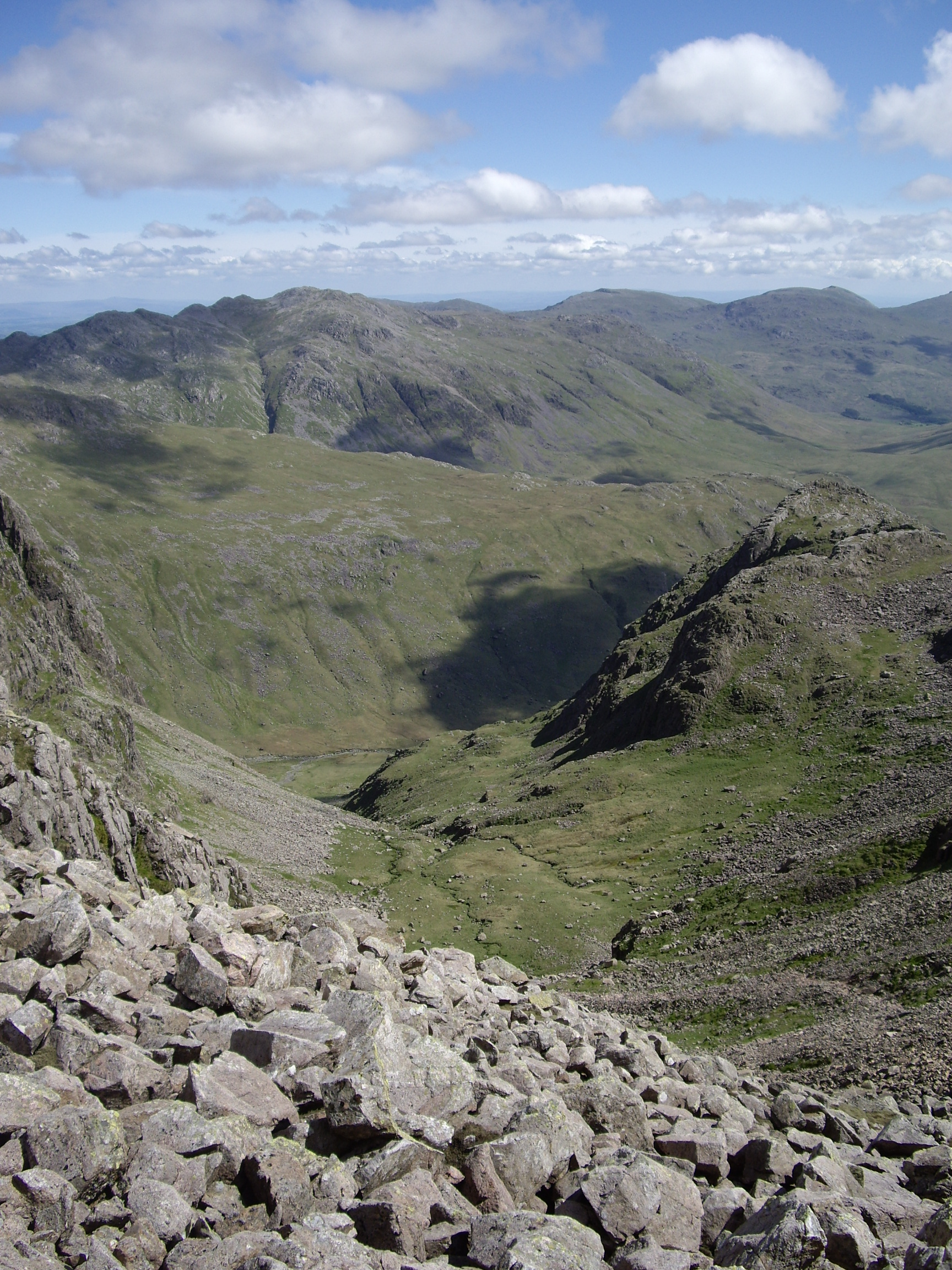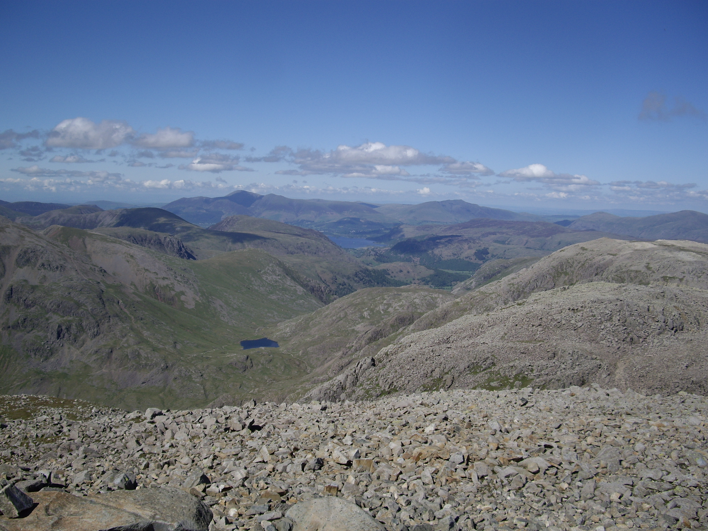 Before long, Little Narrowcove became a tricky boulder scramble up to Broad Crag col. Having reached the col, I took the 'footpath' to the SW to ascend Scafell Pike itself. It was rewarding to realise that the surrounding crags and peaks that I'd been looking up to for so long were now below: I looked down on them!