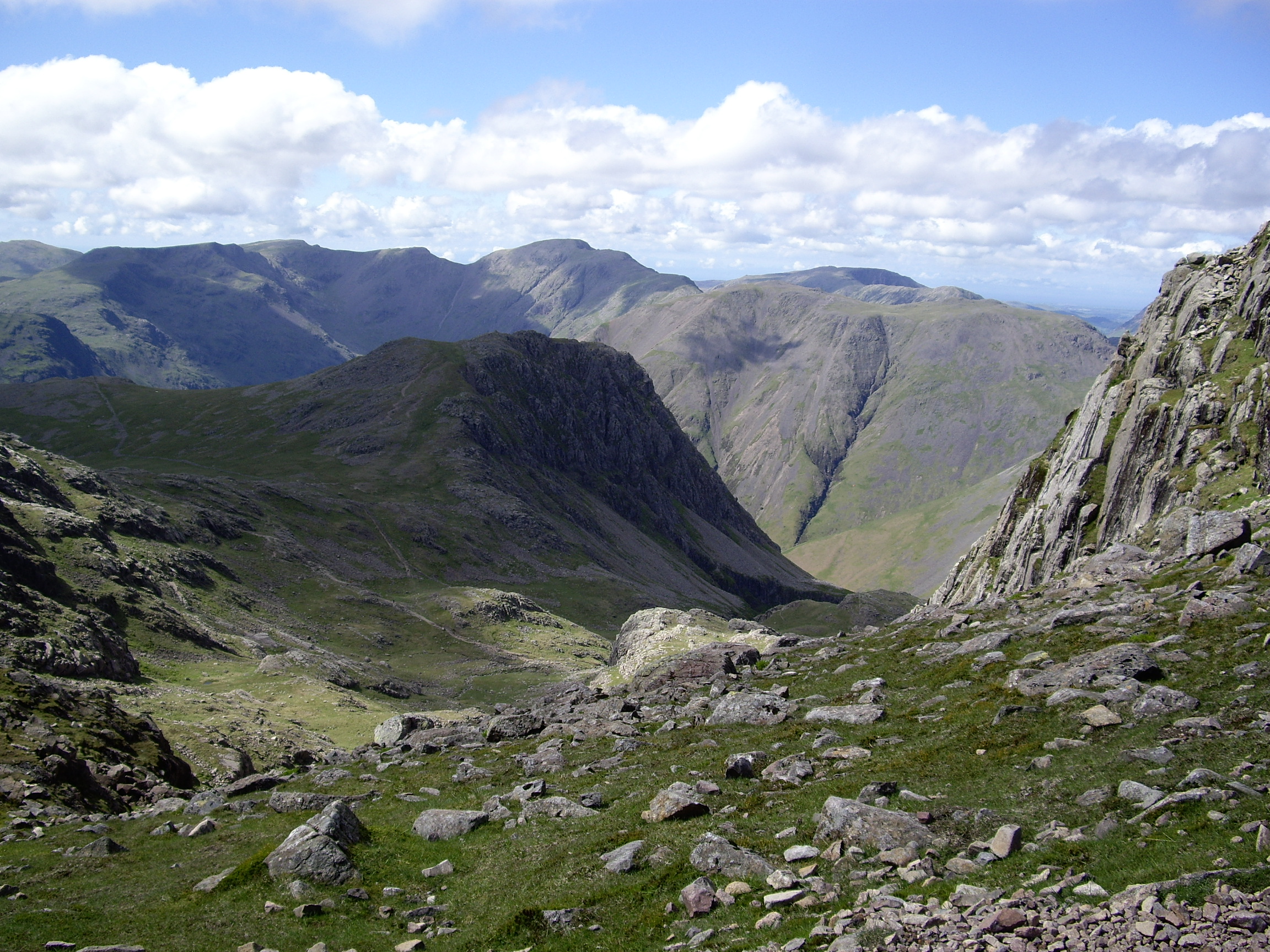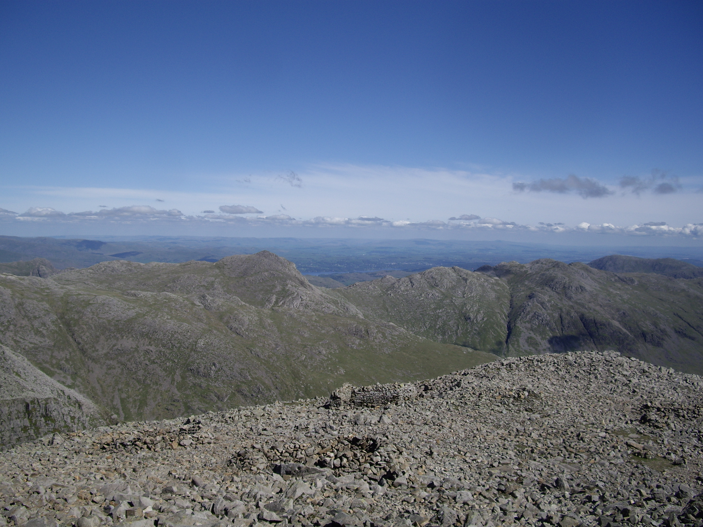 Scafell Pike, Broad Crag and Ill Crag come into view