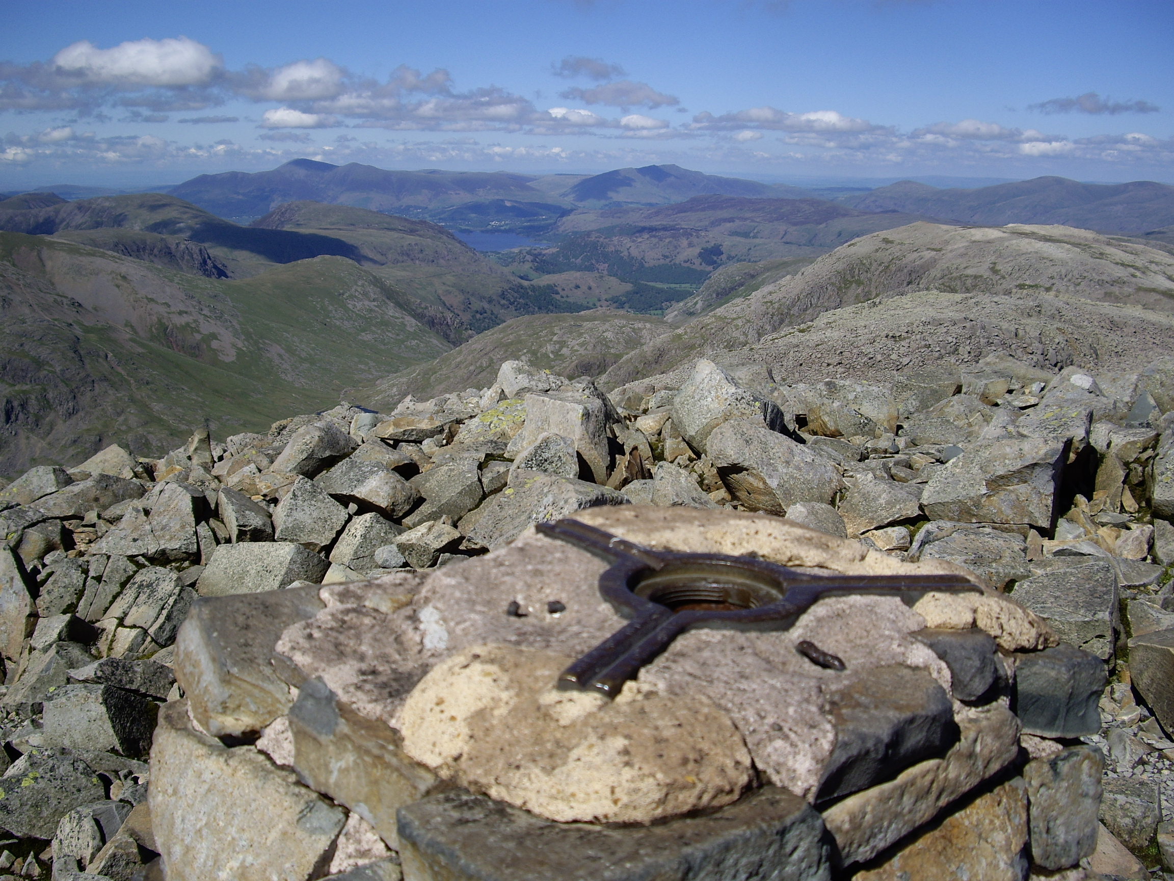 360° panorama of the Scafell Pike summit (978m), including the triangulation station and cairn