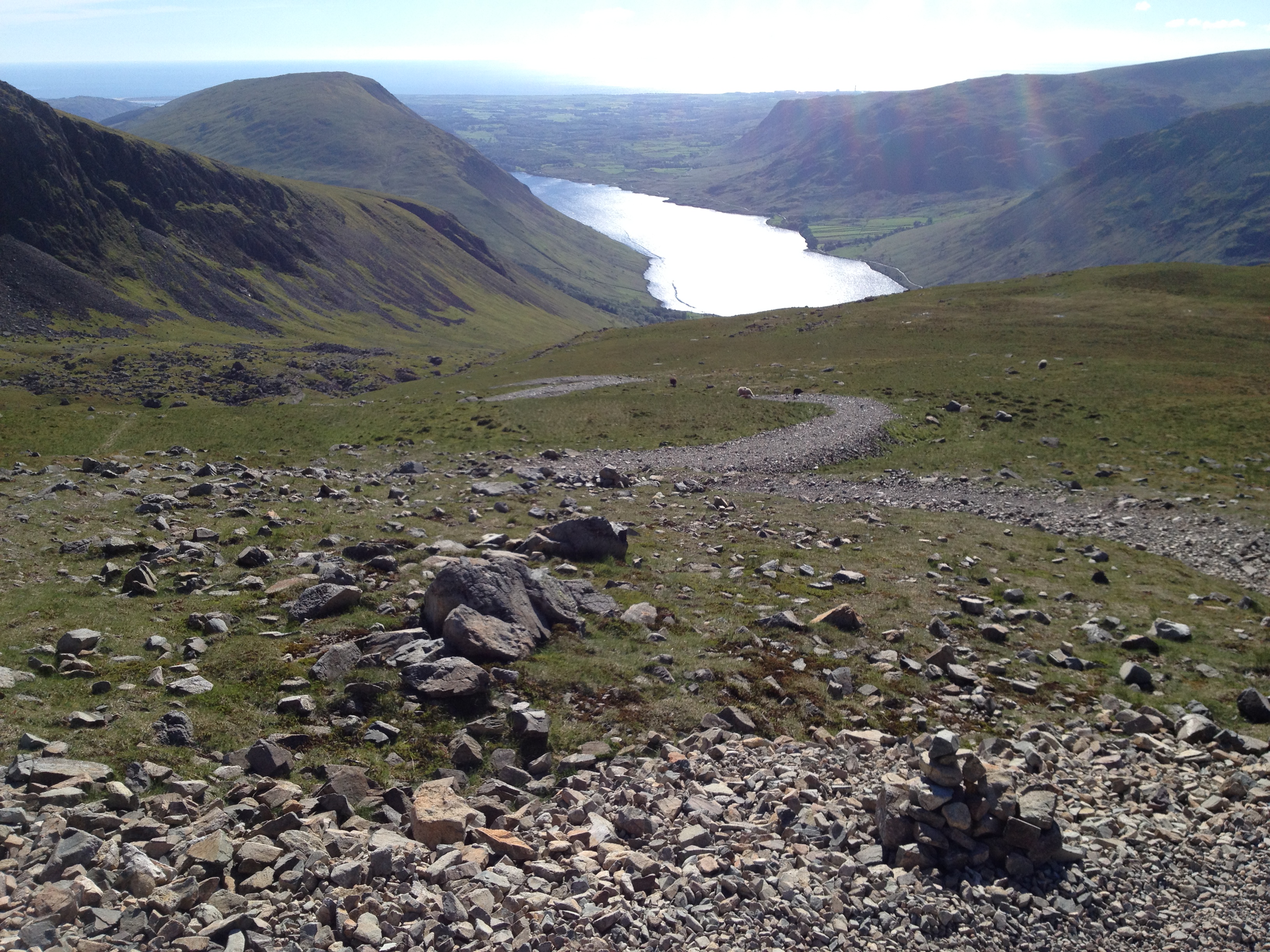 My descent to the west towards Lingmell Gill was definitely easier than the ascent! Wast Water provided a sparkling objective until near the bottom of Lingmell Gill I was able to turn south onto the bridleway towards Burnmoor Tarn and Eskdale Moor.